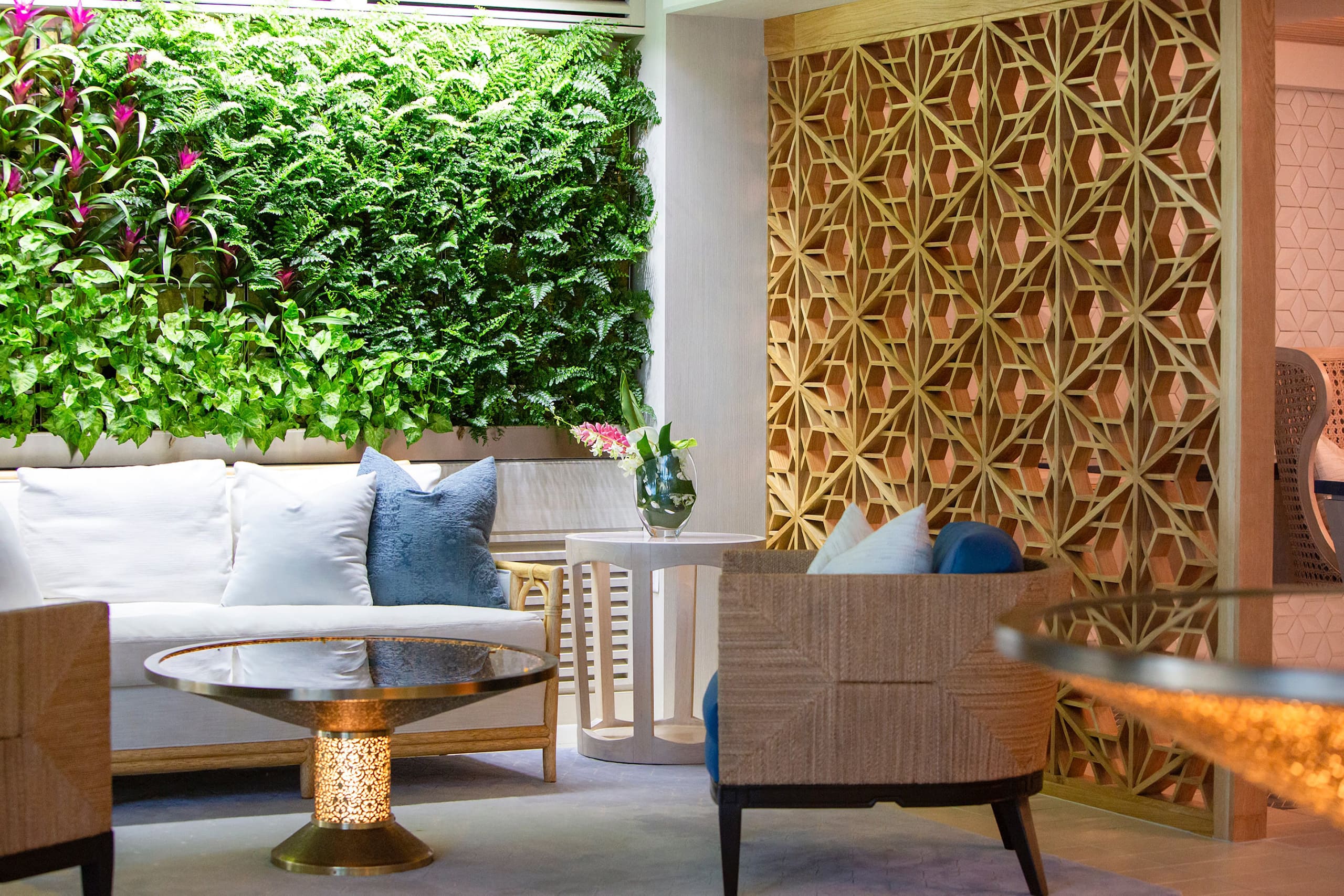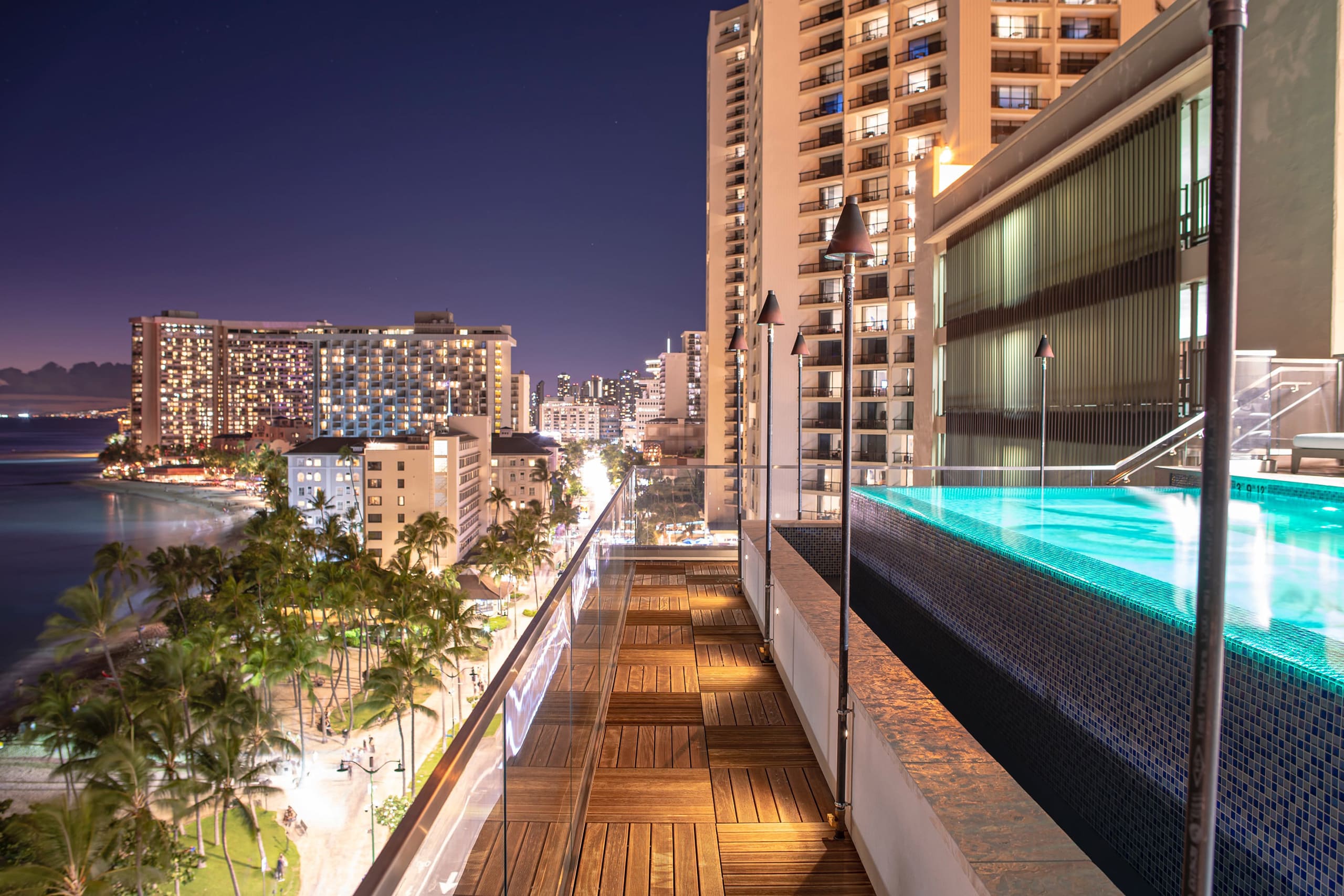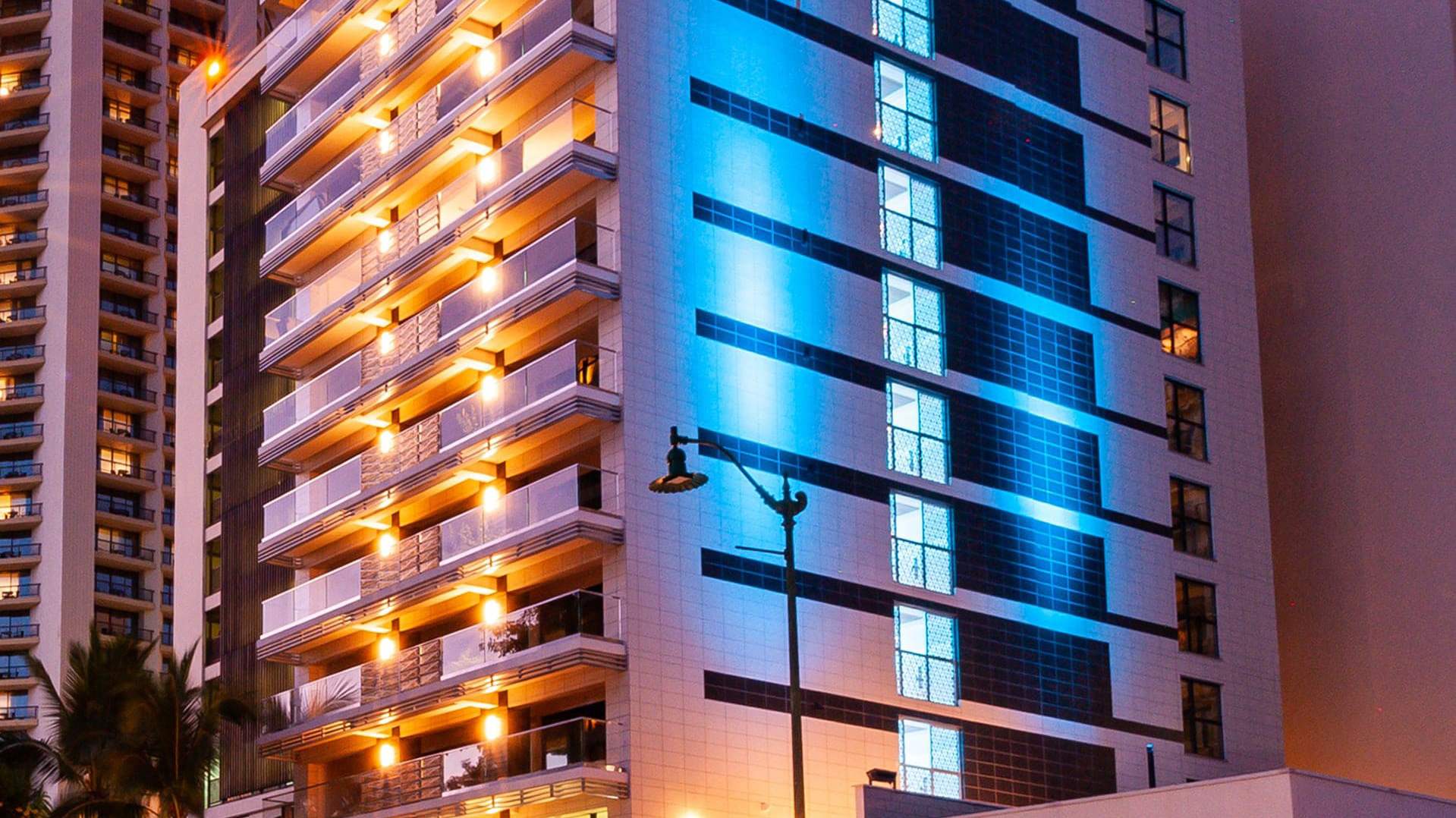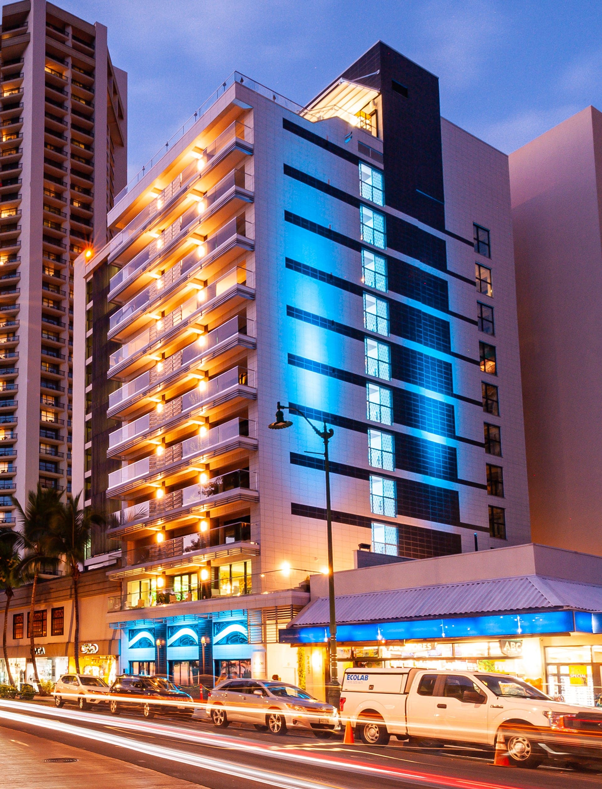 The Espacio Hotel Renovation involved a complete transformation and revitalization of the 12 story, 35,000 square foot hotel built in the 1960's, fronting the world famous Waikiki beach, into a world class luxury boutique hotel. The design called for the conversion of the existing 73 hotel rooms into 9 luxury villas and a day spa.
